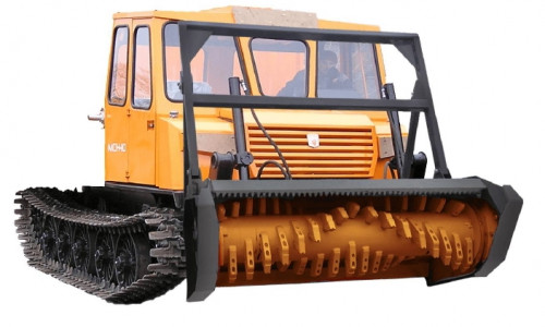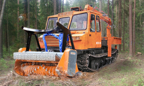 Шасси МСН-10-003-001 предназначенное для агрегатирования мульчерным оборудованием представляет собой самоходную гусеничную базу повышенной проходимости, с гидравлическим приводом для обеспечения оптимальных рабочих скоростей движения. На шасси установлена трехместная кабина с хорошим обзором рабочей зоны трактора и комфортными климатическими условиями для работы оператора. Мульчер FERRI TSKF/F 2200 позволяет измельчать деревья и поросль диаметром до 30 сантиметров. Применение высоких стандартов качества, стальных компонентов HARDOX гарантирует отличную производительность даже в самых тяжелых условиях. В комплектацию входит ротор с фиксированными зубьями; привод с пятью ремнями; передняя открываемая гидравлически шторка; толкающая рама для направленной валки измельчаемой растительности; два ряда контрножей; регулируемые салазки. Возможна установка электрической системы открытия передней шторки.